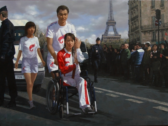 为纪念中国共产党诞生九十周年,上海展览中心日前举行大型展览《我们共产党人》。俞正声、韩正等上海市领导参观了展览。在展览中,由我校舞美系教授徐明德创作的、以我校继续教育学院学生金晶巴黎保护奥运火炬为事迹的油画,引起了参观者的广泛注意。金晶目前一边在我校学习,一边还要工作,特别是还要参加各类公益活动,受到社会各界的继续关注。为了反映她作为青年一代的爱国风貌,激励更多有志青年献身改革开放伟大事业,徐明德教授亲自创作,几易其稿,这幅油画终于问世,并且得到了专家的好评。用徐明德教授的话说:“庆祝建党九十周年活动是一件大事,我们用身边的感动,用油画表达我们对的党的热爱之情,表达我们对新一代的期望,这也是一种贡献啊!”(文:白水 图:明德 编辑:榕树)