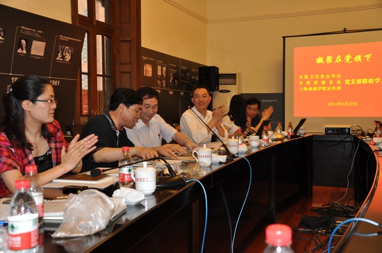 6月22日下午,我校宣传部与教卫党委宣传处、德育处在佛西楼会议室举行迎接七一的党组织联组学习活动。市教卫党委副书记高德毅出席学习会。市教卫党委宣传处长赵杨主持学习会。我校党委书记楼巍、副院长张伟令在学习会举行前亲切接待了教卫党委领导一行。我校宣传部长张生泉也出席了学习会。联组学习是开展创先争优活动中的一次创新形式,有利于交流经验、有利于互相启发思路,我们相信,随着七一的临近,各支部还有更好的活动载体出现。(文:白水 图:陈皓 编辑:榕树) 图为会议现场
