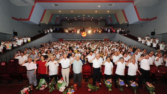 随后进行新党员宣誓仪式,由朱美丽同志领誓,全校新党员上台集体宣誓。离退休党员代表、教职工代表、学生党员代表、机关干部代表,也分别重温入党誓词、郑重承诺。在党旗的辉映之下,整个宣誓过程庄严而又热烈。