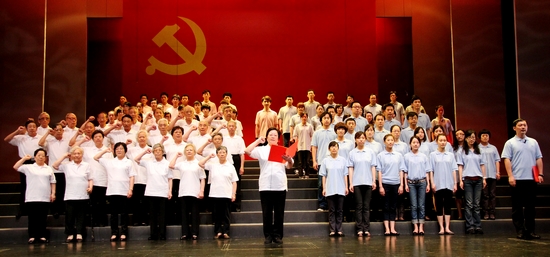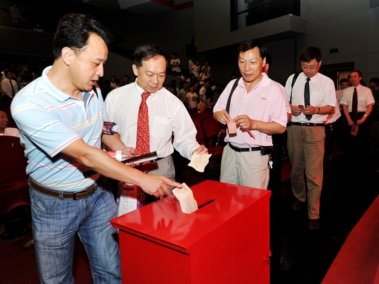 大会最后,由楼巍书记领誓,全场起立共同宣誓。在全场齐唱《国际歌》之后,党员代表依次将承诺书郑重地投入投票箱内。