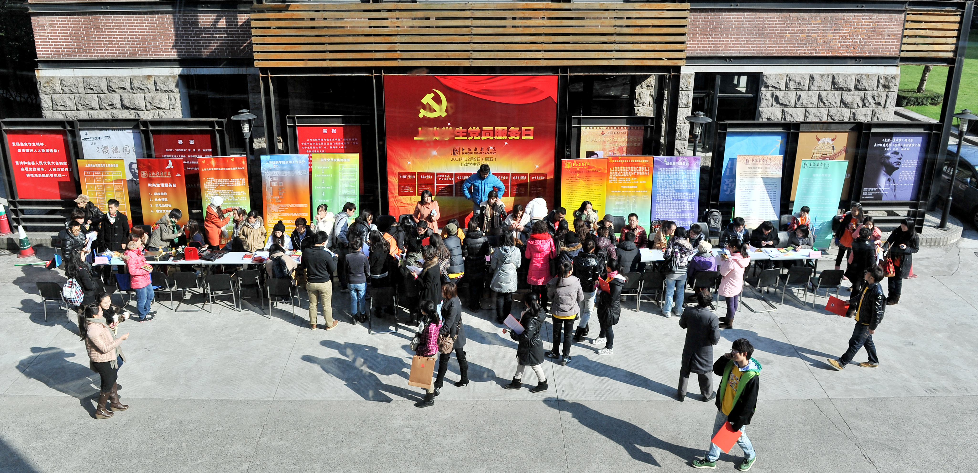 岁末渐至,风寒日暖。12月9号中午,2011年上戏学生党员服务日活动在端钧剧场外拉开了序幕。党建、素养教育、助学贷款、心理教育、就业指导以及极具特色的时尚生活几大主题的咨询台前人头攒动,学生党员向同学们提供入党流程、创新计划、奖学金助学贷款、就业指导等校园生活方面的咨询服务,整个中午,上戏大道中心的服务台前熙熙攘攘,同学们从中了解了更多的学习信息。