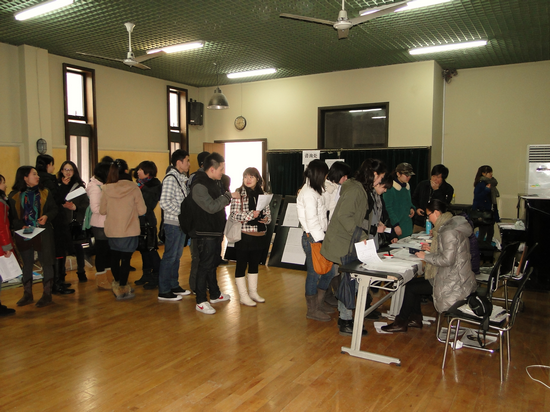 图为报到注册现场