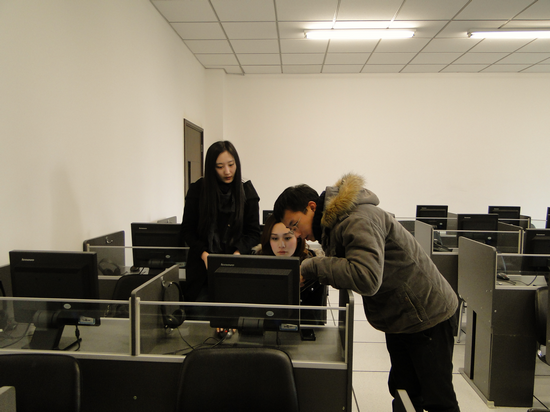 图为教师在红楼210机房指导学生选课