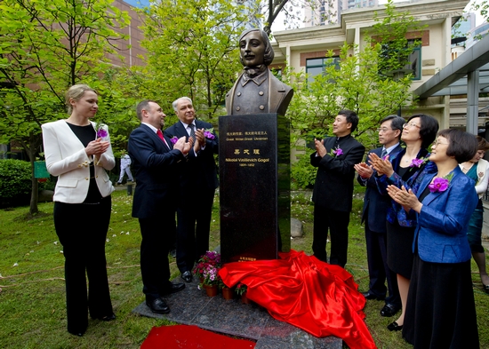 2012年4月25日下午3:30,上戏毓秀楼旁的小草坪上热闹非凡,人头攒动。上戏师生、学子和社会各界人士相聚于此,共同见证果戈理雕像揭幕的那一刻。