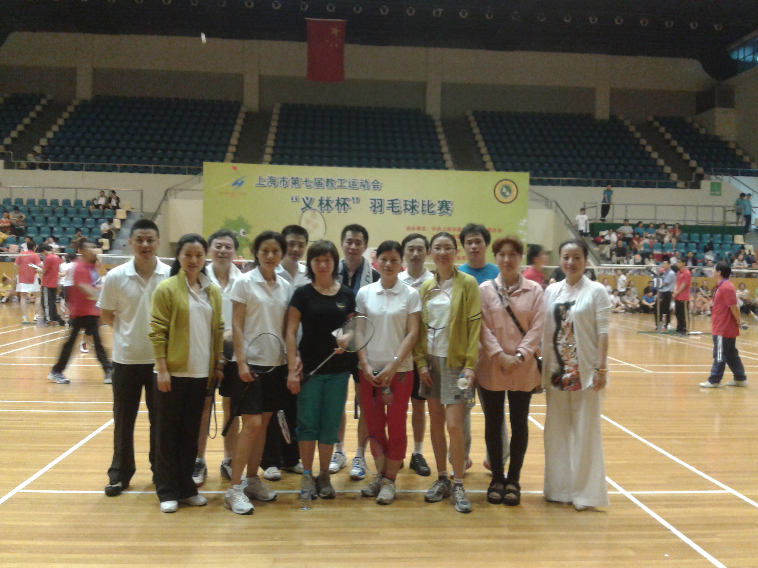 为期8个月的上海市“第七届教工运动会”之“羽毛球比赛”于 5月16日中午正式开始,教育工会夏玲英主席等出席了开幕式。我校羽毛球代表队一行15人在工会副主席王苏老师的带领下前往华东师范大学(中山西路校区)体育馆,参加由华东师范大学承办的羽毛球比赛。