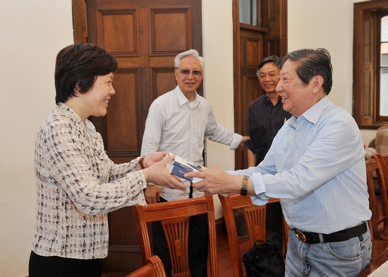 在6月5日下午举行的横浜桥校友每月聚会活动中,47级校友房子先生(原名房天琪,离休前是浙江电影制片厂厂长)专程从杭州带来了刚下印刷包装线的新著《我的艺术人生》,送给母校和当年的同窗好友。胡敏副书记代表学院接受了房子先生的著作,并回赠了学院出版的《以镜照镜》给房子先生,感谢他对母校的贡献。房子先生还将新著赠送给了校图书馆和档案室。