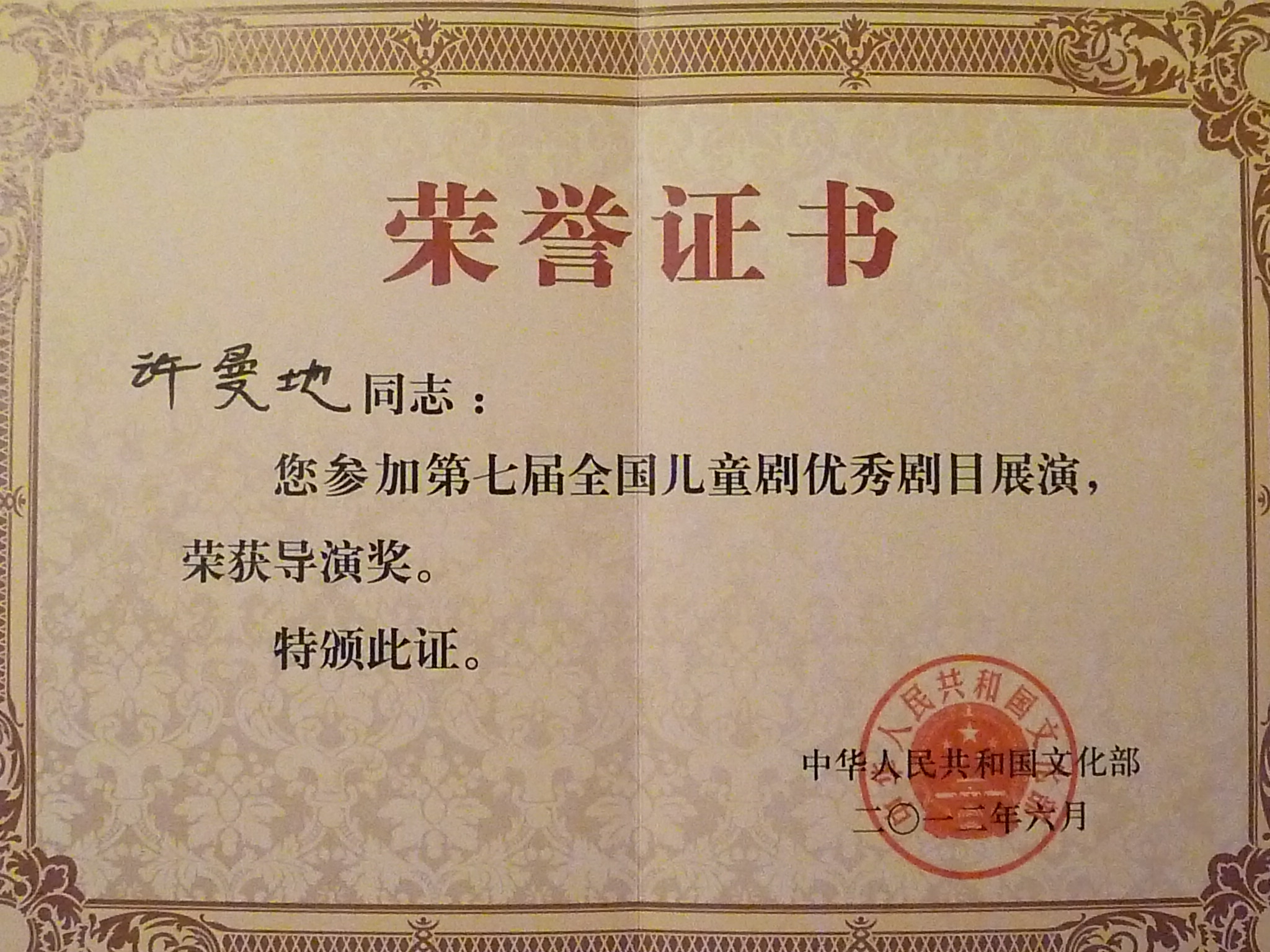 近日,由我校09届戏剧戏曲学硕士毕业生许曼地编剧、导演的童话剧《拇指姑娘》获得第七届全国儿童剧优秀剧目展演“优秀演出奖”,许曼地荣获导演奖。(文、图、编辑:榕树)