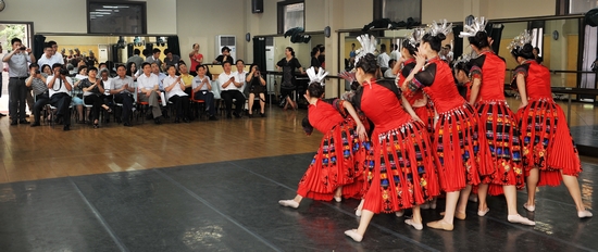 图为委员们观看舞蹈学院教学片断