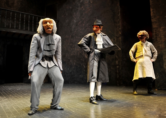 由法国导演Christophe Patty和中国导演王洋老师导演,上海戏剧学院表演系、舞美系09级本科班实习剧目《吝啬鬼》在6月15日下午15:00,6月15日到19日晚上19:30在上戏端钧剧场演出,场内反响热烈,笑声不断。这一喜剧改编自莫里哀的《吝啬鬼》,全剧始终演员都戴着面具,这些面具将人物的性格特点完美地呈现,而面具则是由法国“面具联合会”创始人之一的Etienne Champion设计制作。该剧的导演也是“面具联合会”的创始人之一。这个喜剧打破了舞台的局限,演区在观众席和舞台之间灵活转换,演员与观众充分互动,使得观众们也成了演员的一部分,而这一设计也使得观众有了充分的参与感,并且取得了很好的效果。(文:何雨婷 图:佳奇 编辑:榕树)