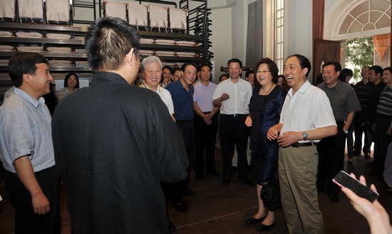 6月28日,上海市教委副主任袁雯、普陀区人大常委会主任许伟国以及普陀区人大机关有关领导一行来我校调研。校领导韩生、黄昌勇、宫宝荣等出席了接待。调研组一行参观了上戏校园,并在端钧剧场观看了表演系09级实习大戏《我在天堂等你》。在学校虚拟实验室,韩生院长为调研组一行介绍了上戏校史,创意学院副院长刘志新介绍了米亚中心的有关情况。(文:榕树 图:佳奇 编辑:榕树)