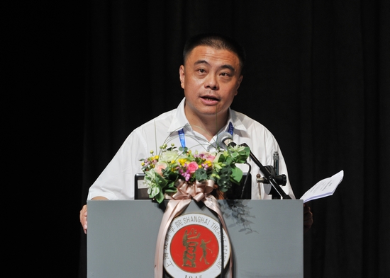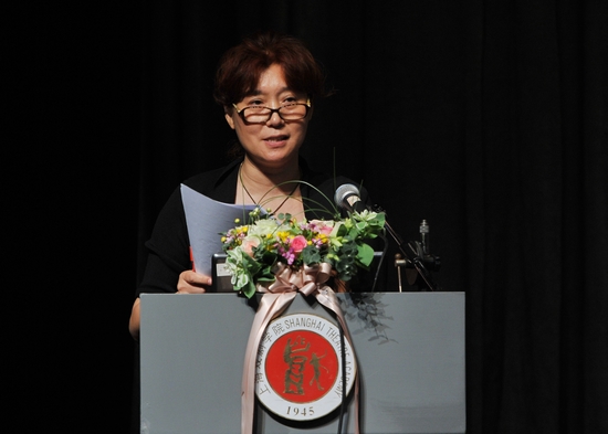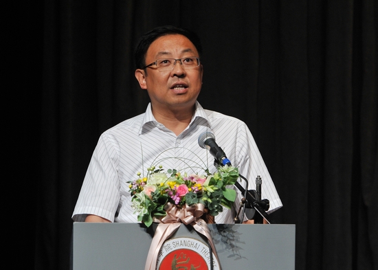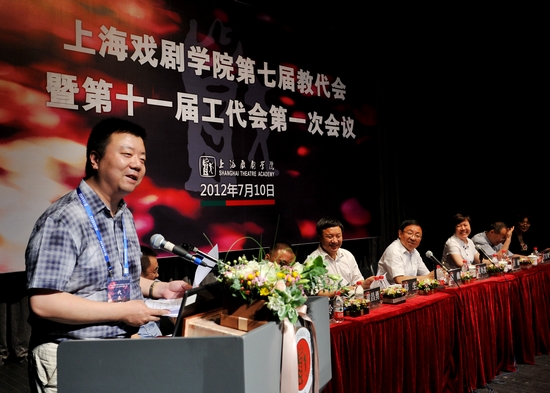 图为院长韩生做《2012年上海戏剧学院行政工作报告》