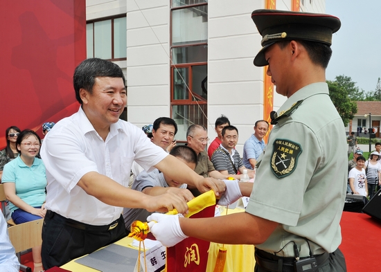 图为韩生院长为承训部队授予锦旗