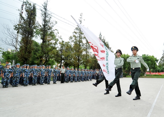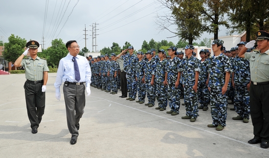 图为楼巍书记检阅2012级新生受训部队