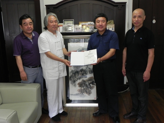 为了感谢学院的支持和培养,在教师节之际,赵凤岐专程携自己的精心画作《山川水好有人家》和出版的画册,来到母校,将作品和画册赠送给学院。院长韩生、图书馆馆长王伯男、舞美系书记刘永华接待了赵凤岐先生。
