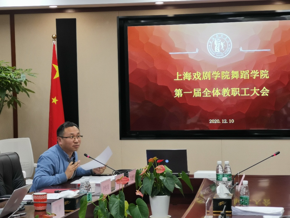 2020年12月10日,上海戏剧学院舞蹈学院召开了第一届全体教职工大会。在会议正式召开前,舞蹈学院多次开展了筹委会和主席团会议,力保教职工大会的顺利进行。本届会议实到正式代表57人,由离退休教职工和外聘教师组成的列席代表15人,上海戏剧学院党委副书记、副院长张伟令,上海戏剧学院舞蹈学院院长陈家年,上海戏剧学院舞蹈学院副院长杨新华作为特邀领导出席了本次会议。