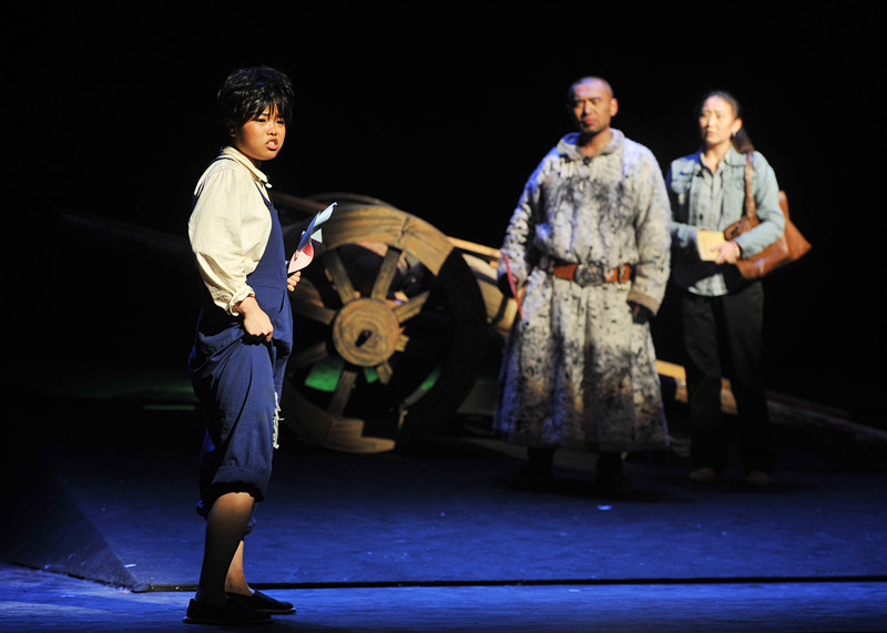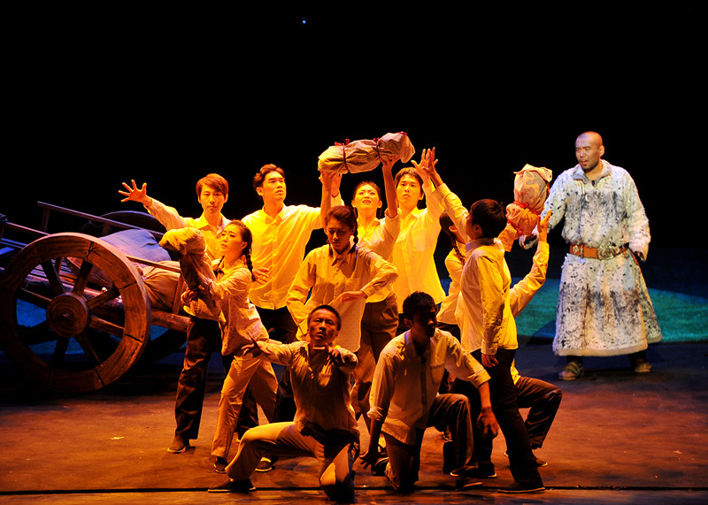 我校参评剧目《国家的孩子》作为开幕大戏于开幕式后登台亮相。该剧以上世纪60年代初共和国遭遇自然灾害,在党和国家领导人的关心和安排下,内蒙古草原人民以其宽阔的胸怀,接纳和抚育了3000多名南国孤儿的感人故事为背景,诗意地表现了以温都苏和嘎鲁为代表的一群国家的孩子,在草原养父母的无私帮助下摆脱苦难并获得幸福的人生经历。