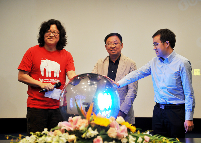 21日上午,楼巍书记与中央电视台数字频道总监王向群、酷6网CEO施瑜一起启动水晶球,正式宣布上戏第三季微电影活动启动。(文:东晓 图:佳奇、学生记者 杨立原、刘佳睿 编辑:榕树)