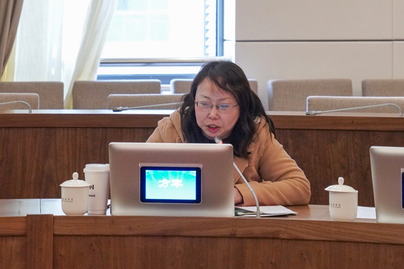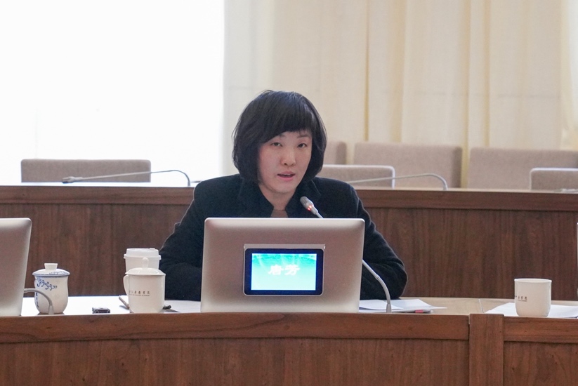 (创意学院党支部副书记、部门工会主席唐芳作工会工作报告)