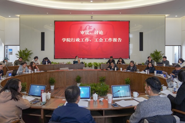 在讨论环节,全体教师对行政工作报告和工会工作报告进行审议,并围绕教学、科研、创作和学生管理等问题提出了建议。大家认为报告总结全面,比较务实,客观地反映了创意学院的发展状况,给了大家信心和鼓舞。大会以举手表决的方式通过了这两个报告。