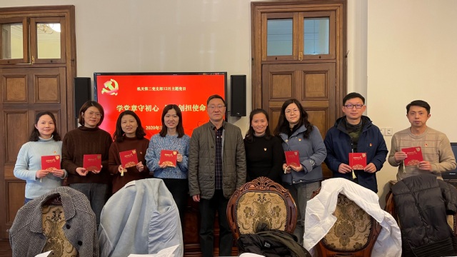 根据学校组织部关于12月份主题党日和组织生活的要求, 12月25日下午,机关第二党支部在老干部活动室举行了“学党章守初心、品文创担使命”主题党日。党委书记谢巍为支部下半年过政治生日的同志颁发了生日贺卡。会上大家共同学习了党章并谈了学习体会。主题党日由支部书记徐莹主持。