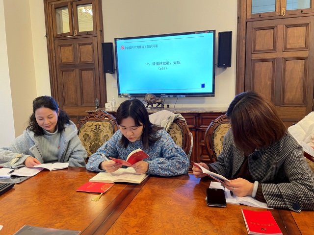 在党章学习环节,曹颖、徐京卫、方志超三位同志分别围绕党章总纲、党章修订历程、民主集中制谈了自己的学习体会,让支部同志从党章的逻辑、演变、重点等不同角度进一步加深了理解。环节中还专门设置了党章知识问答,每一个支部党员通过抽题作答的形式来巩固党章中的重点内容,大家纷纷表示,要通过党章学习进一步明晰党员标准,用干事创业的行动来遵守和贯彻党章,做一名合格的共产党员。