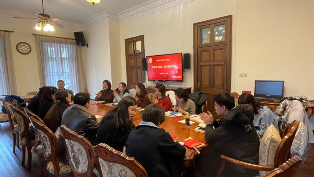 本次主题党日还特地邀请了创意学院陈晔老师为支部同志分享了红色文创的教学实践。陈老师从学校大思政格局的构建、课程思政的教学理念、红色文创的培育过程等方面,结合具体的教学案例,讲解了如何把红色文创引入设计课程,如何引导学生通过小组调研发掘弘扬红色文化的灵感源和创新点。陈老师现场向大家展示了带有戏剧特色的面具徽章和文件夹等文创产品,并期待将产品推向市场,为弘扬红色文化和上戏精神作出自己的努力。