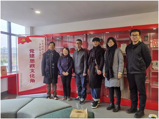 上海戏剧学院党委宣传部副部长、创意学院党支部书记方军,向客人们介绍了党支部新建的“党建思政文化角”的情况。党建思政文化角,是上戏创意学院党支部作为市教卫工作党委系统攀登计划“样板支部“建设中的特色项目,用于集中展示创意学院在党支部的政治引领下在课程思政、“四史”学习教育等方面取得的成果。目前,创意学院师生设计制作的一批红色文创作品已进入党建文创思政角。