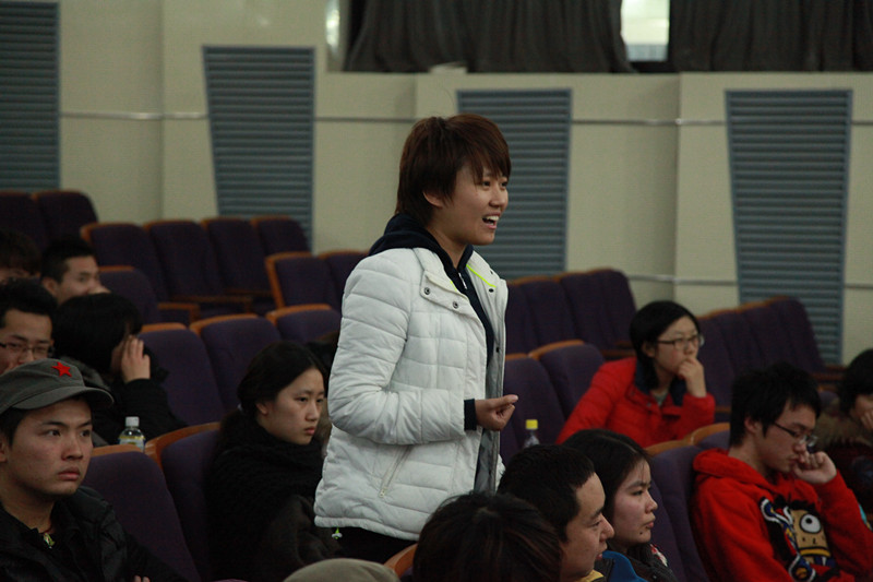 接下来,同学们围绕着展映影片的艺术内涵、创作过程,结合自己在专业学习和艺术实践中的困惑,纷纷向两位老师提问。李忱和洪帆老师以幽默犀利的言辞、真诚率性的表达对同学们的问题逐一耐心解答,并不断鼓励大家勤于思考、勇于实践、善于总结,在实现艺术理想的道路上执着前行。不知不觉已到了晚上6点,这一场超长的讲座在师生们热烈的交流中不得不结束了。