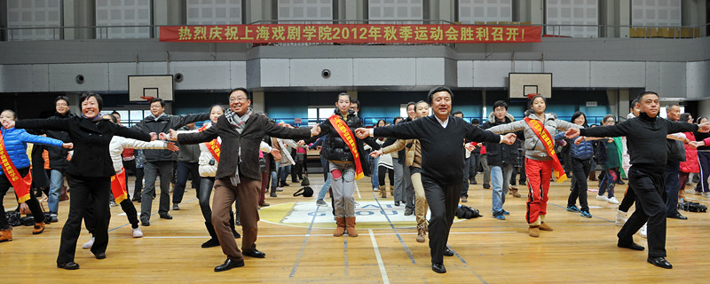 12月6日下午,欢快精彩的上海戏剧学院2012年教职工秋季运动会在舞校体育馆鸣锣开战。党委书记楼巍、院长韩生、党委副书记胡敏、副院长张伟令,以及学校全体教职员工参加了这次妙趣横生的运动会。本届教职工秋季运动会有投飞镖、夹弹珠、仰卧起坐传接球等十多项个人和集体项目。老师们踊跃报名,积极参赛,表现了上戏教职工积极向上、顽强拼搏、不屈不挠、勇于进取的精神风貌。(文、编辑:榕树 图:佳奇) 图为校领导和全体教职工精神抖擞地做广播体操 图为舞校青年教师表演海派秧歌 图为激烈的赛事现场