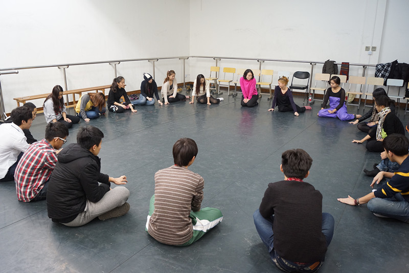 首先,Malgosia带领同学们手指运动练习,用手指演绎不同种类的人物形象,让同学们在活动中感受,在放松中学习;其次,她带领大家用一把椅子做即兴物体创作,建立物体与自己内心的一种联系即两者融为一体,把能量传递给物体,做到真诚对待物体而不是刻意表演。