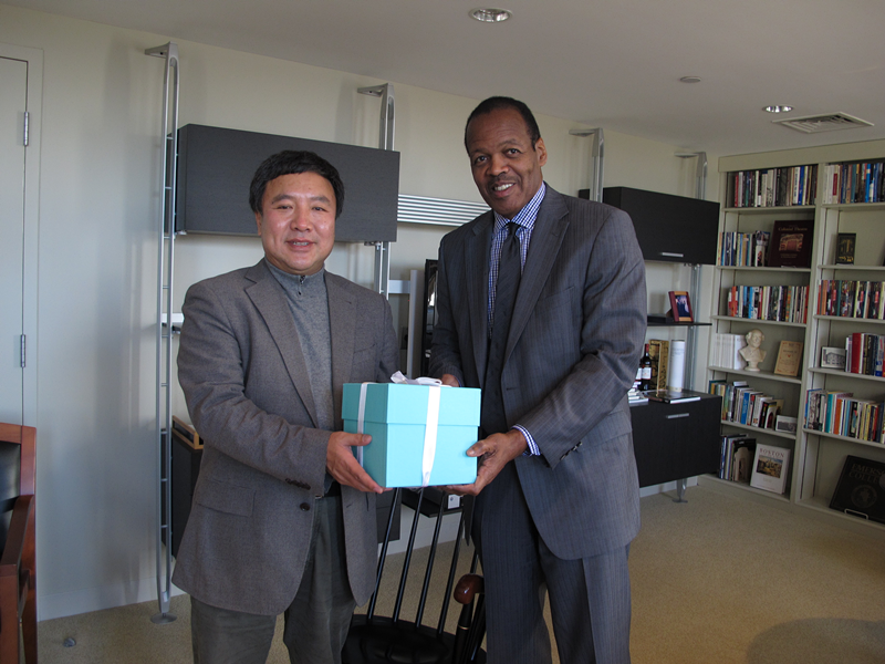 图五.韩院长与艾默森学院校长Pelton合影