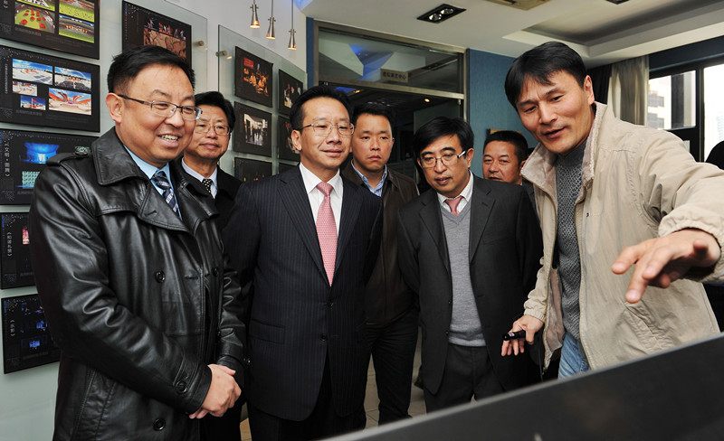 图为高峰副省长参观虚拟实验室和米亚中心