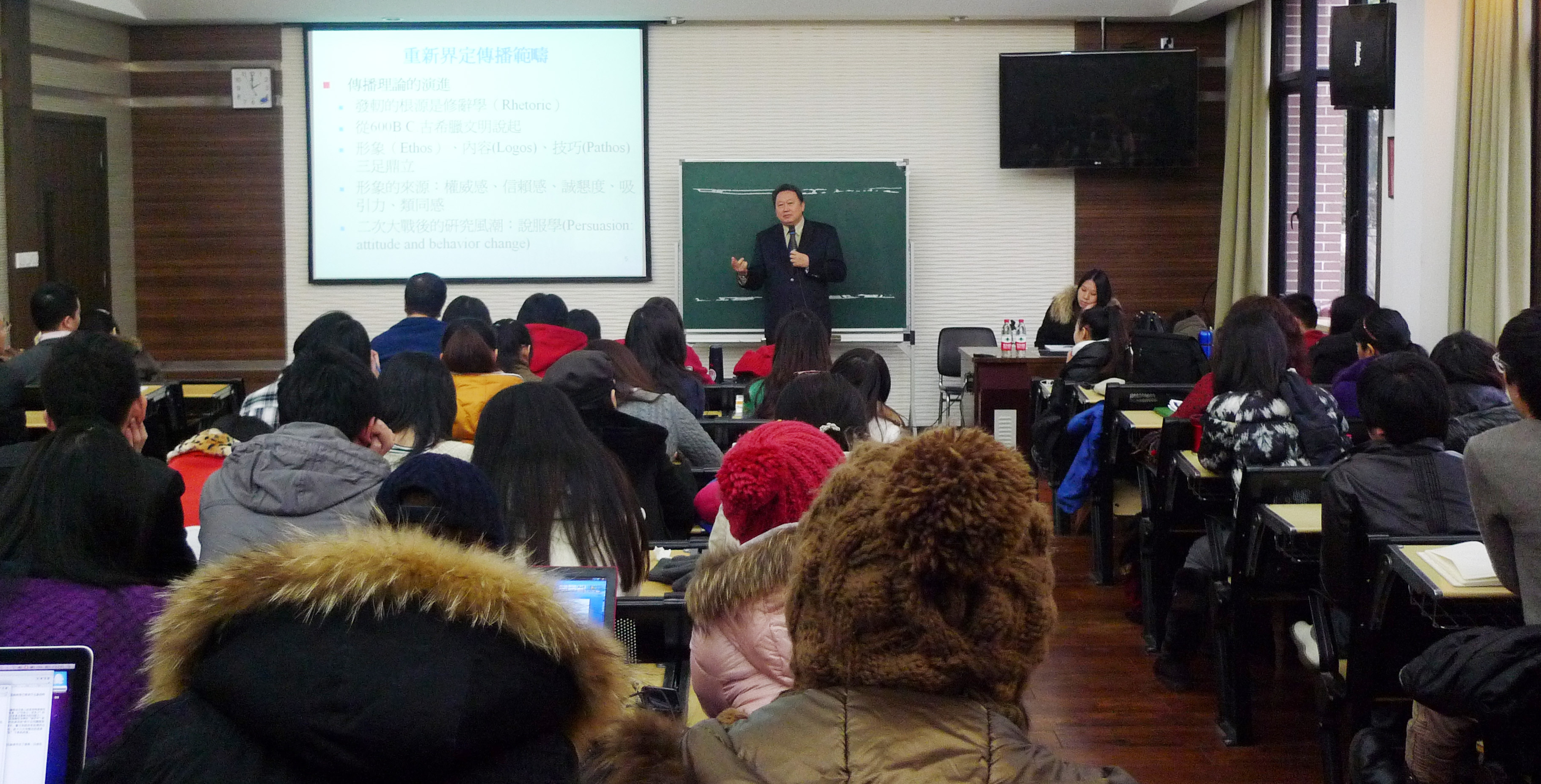 赵博士以其丰富的学识,对传播学的形成历史及最新的定义做了简明而生动的阐述。以一个个深入浅出的例子,形象地把传播学中的专业理论词汇,及其在日常生活中的实践结合起来讲解。如在商业广告中,成功运用到传播学中“类同感”的概念,使一家小快餐连锁店,以低成本的广告击败麦当劳,迅速在老年人群中建立起自己的品牌地位。一个个小小的实例,不断引发听众的思考,如何把学到的理论知识运用自如。赵博士还介绍了一项二次大战后的研究风潮:说服学。作为这一领域的资深专家,赵博士讲述了他如何巧用这门改变人态度、行为技巧的学问,使他的一位学生逐渐成为主动热爱学习的人。接着,赵博士简单概述传播领域最新的研究成果。