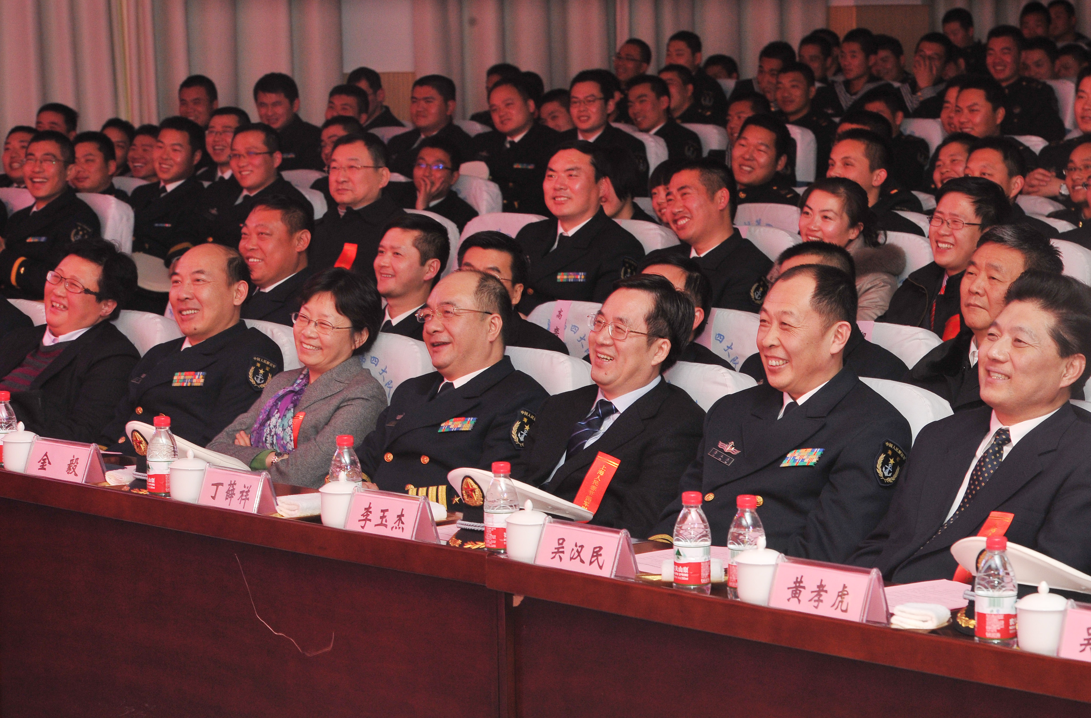 图为领导与官兵一同观看我校女子群舞《花儿》