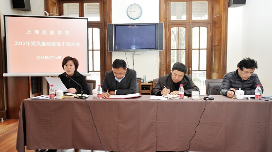 党委书记楼巍同志在会上作了重要发言,向与会干部提出了四个方面的要求。一是要深刻认识党风廉政建设和反腐败工作对我们自身事业发展的重要性;二是要加强党的纪律,增强党员意识,维护党章权威,强化党的基层组织建设,提升师生个人素养;三是要突出重点,狠抓落实,今年重点抓好科研经费、演出经费、招生、基建、园区建设以及民主文化建设等工作;四是要切实改进工作作风,密切联系群众,办人民满意的艺术教育。楼书记强调,作为党和国家的干部,一定要强化纪律意识和公仆意识,牢记为人民服务的宗旨,心怀敬畏组织、敬畏群众之心,自觉接受监督。最后,楼书记以俞正声同志的一段话作为结语,要求大家“要遵守章程、认真履责,坚持真理、勇于直言,拒绝冷漠和懈怠;要善于学习、勤于思考,深入实际、实事求是,力求客观公正,拒绝浮躁和脱离国情的极端主张;要遵纪守法、克己奉公,厉行节约、勤俭办事,拒绝奢靡和一切利用权力或影响谋取私利的行为”。