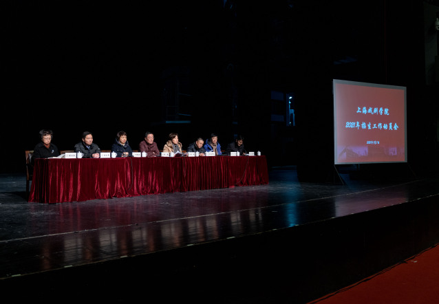 2021年1月7日中午,我校2021年招生工作动员会在上戏实验剧院召开。校领导谢巍、胡敏、周银娥、张伟令、唐立兔、杨扬、张佳春,招生办公室主任刘志新,各职能部门负责人、各二级院系全体在职教职工参会。会议由胡敏副书记主持。