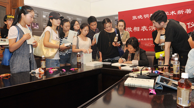 本次活动由表演系、宣传部、学工部主办,以“茶谈会”的形式进行,来自表演系、表演进修班和学生记者团的同学们共同参与。活动的气氛轻松愉悦,大家一边享受点心饮料,一边倾听各位老师对本书的看法和认识。张晓明教授面对满场同学的热情,还有为她专门从横店、北京赶回来的学生,既激动又感动,声言写书不易,但为了学生却值得。