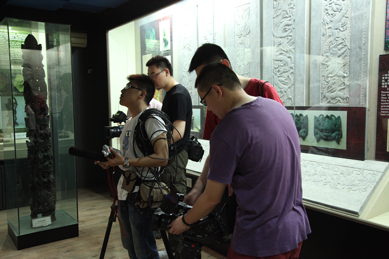图为同学们在山西师范大学戏曲文物研究所创建的戏曲博物馆拍摄采访