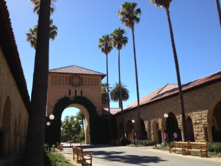 朝阳沐浴下的斯坦福校园郁郁葱葱