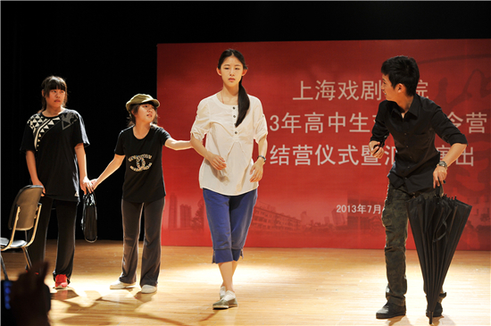 7月14日上午,“上海戏剧学院2013年高中生戏剧夏令营”结营仪式暨汇报演出在红楼东排举行。我校党委副书记胡敏,宣传部部长张生泉,学工部部长、招就办主任徐咏,表演系教授范益松,上海市教委体卫艺科处领导蒋萍芳,北虹中学校长张峻,以及来自格致中学、向明中学等重点高中的教师代表和学员家长代表共同出席了本次活动。活动由我校大学生志愿者金世昌主持。