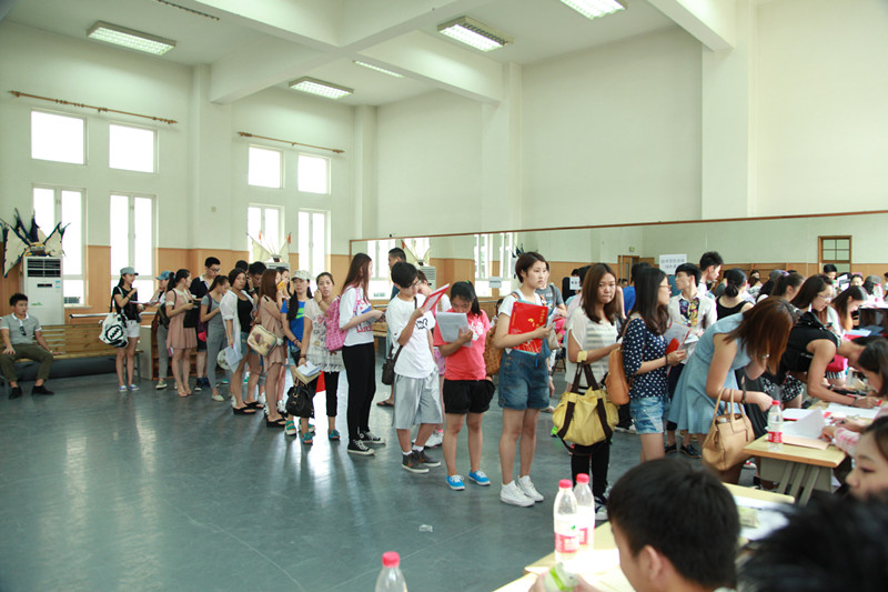 虽然新生报到的流程较为繁琐,但学生和家长们都井然有序地排队办理材手续。学生们先到各自的院系领取学号和课程表、填写学生卡,然后到财务收费处缴学费、军训费以及保险费,随后到学校各个职能部门的办事点办理相关材料,最后在学生公寓大厅领取钥匙,办理入住手续。与此同时,上戏剧院和白宫练功房的门口都有保卫处的保安人员为新生们耐心讲解安全知识,增强新生的安全意识。