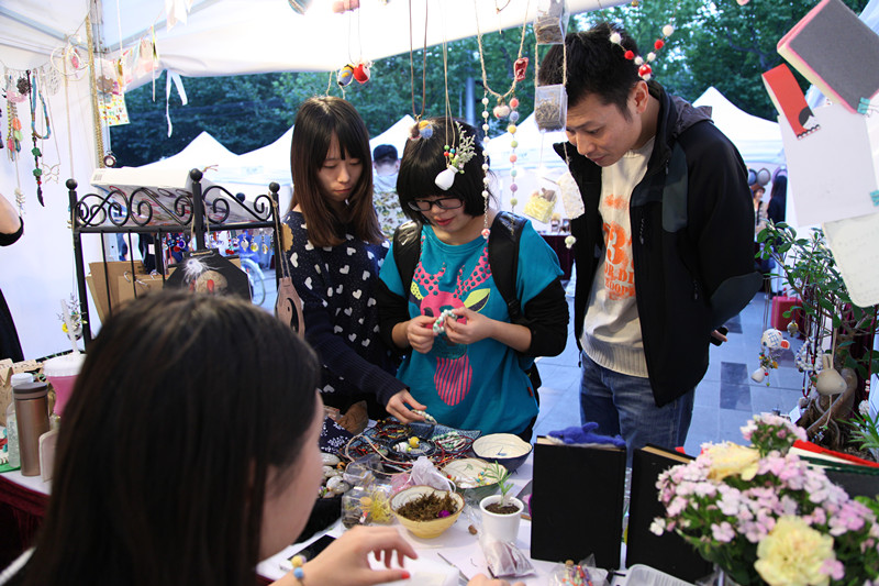 青年艺术创想周已经拉开帷幕,所有的节目正如火如荼地在我校大大小小的剧场以及草坪上演,在欣赏那些众多演出的同时,让很多观众和外籍艺术爱好者也都能亲身领略到每一个节目所展现的新奇艺术形式,除了那些大大小小的演出,不得不提的就是“创意市集”了。
