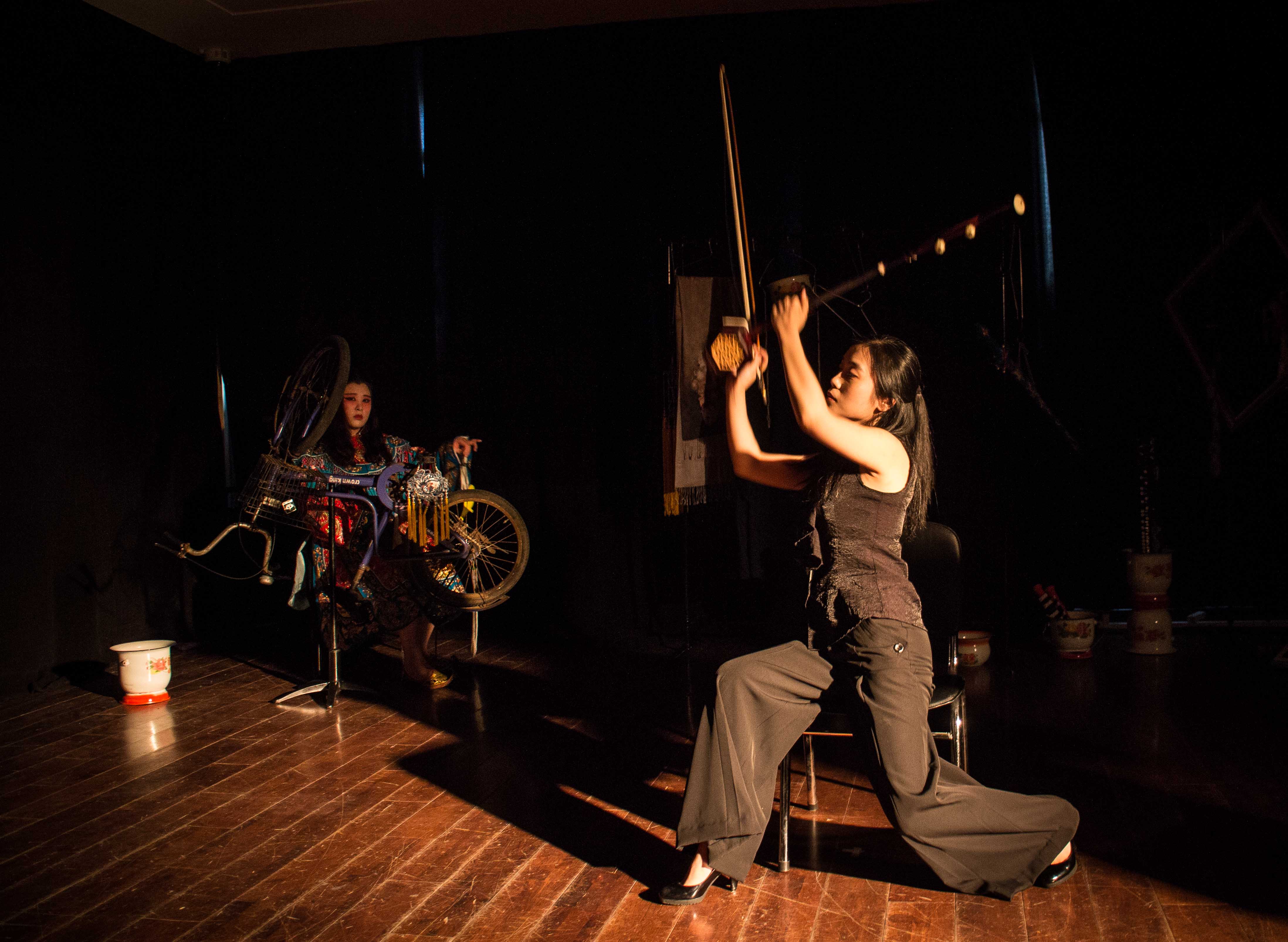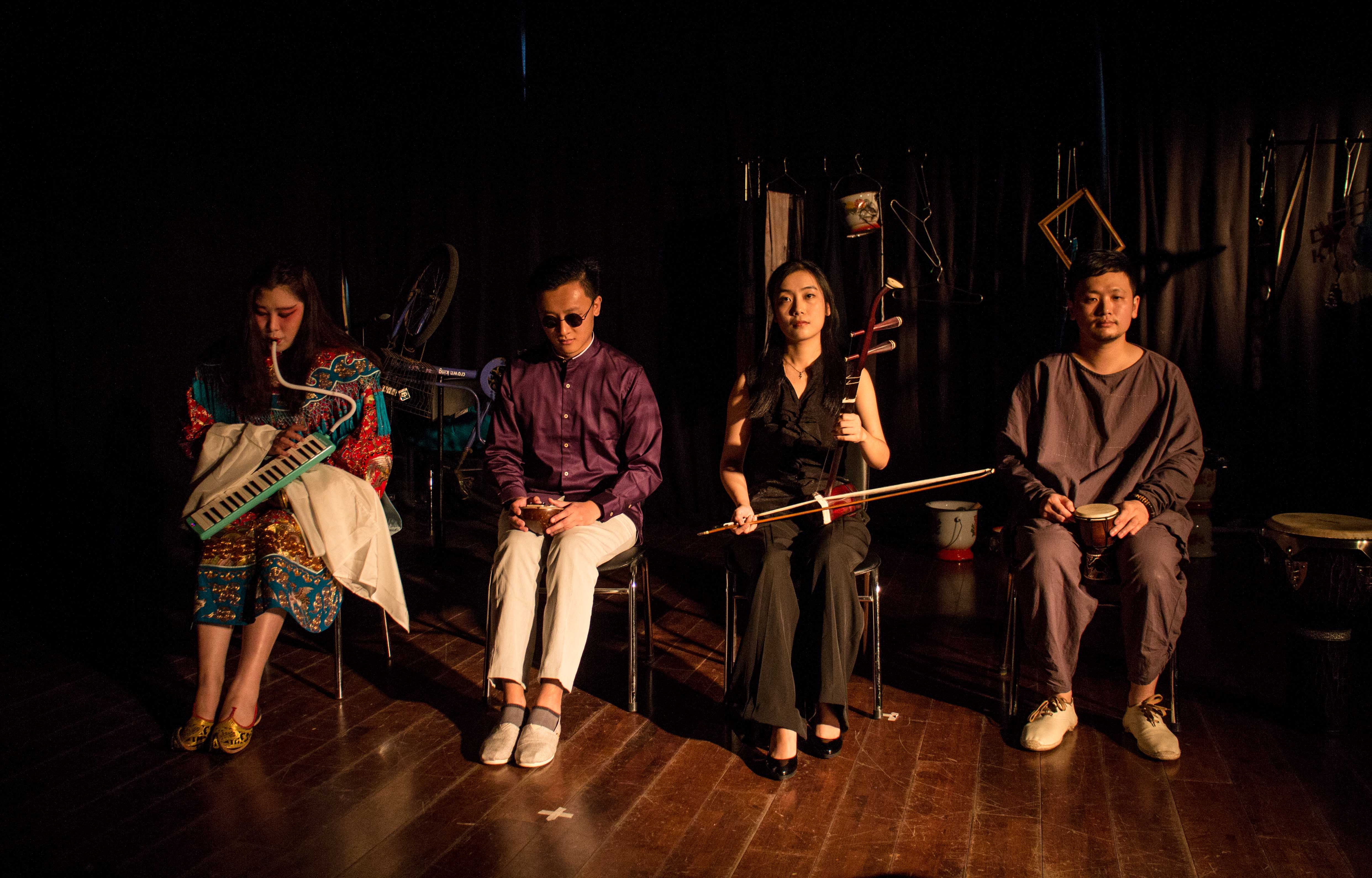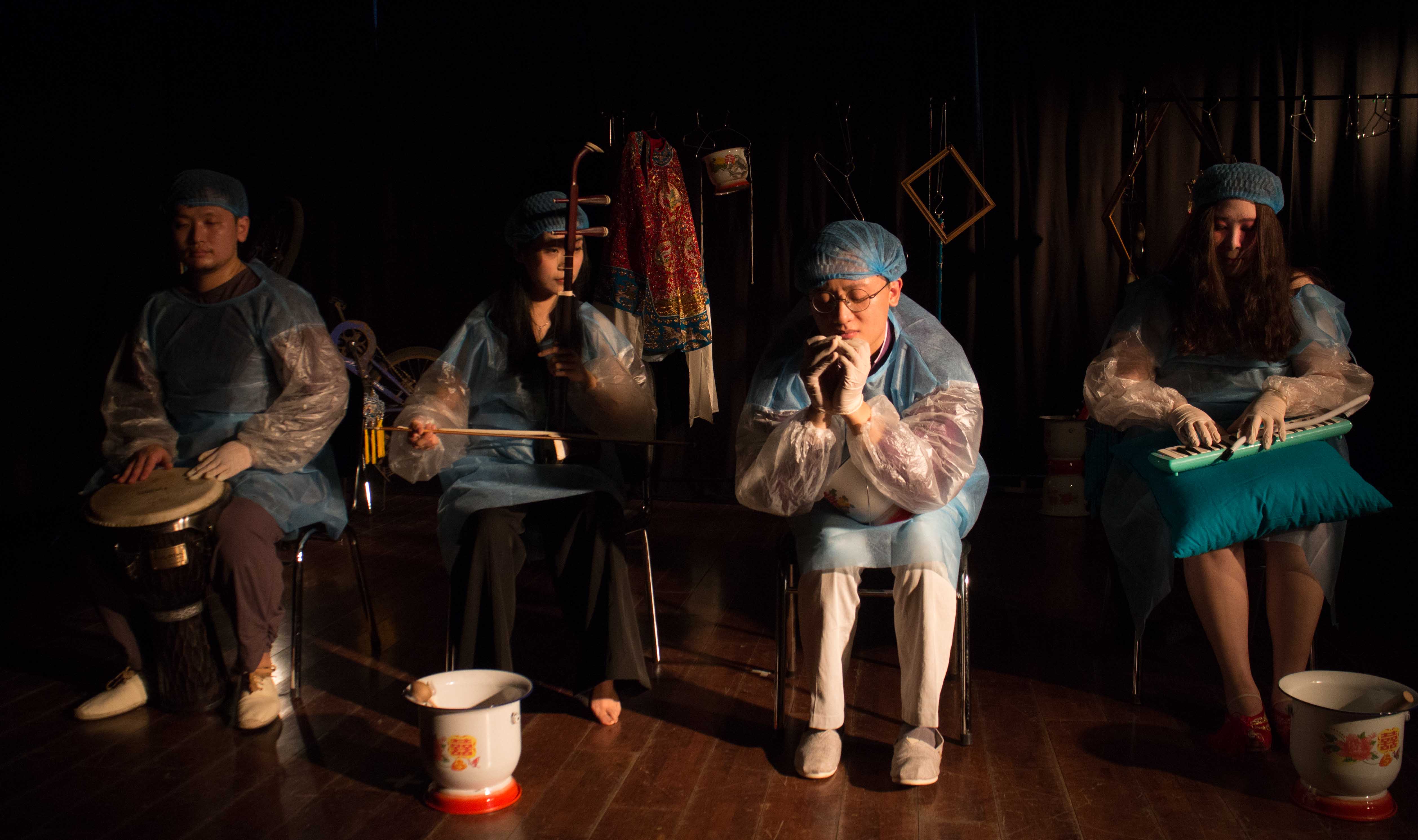 当我走进只能容纳25人的表演空间时,我被周遭漆黑的墙壁压抑得有些不舒服,昏暗的光线微弱地照亮着演员和道具的轮廓,我对接下来的表演有些摸不着头脑,而在接下去的70分钟表演中,我的疑问和理解不断被推翻,我想自己对音乐的了解实在甚微,难以执笔来解读。