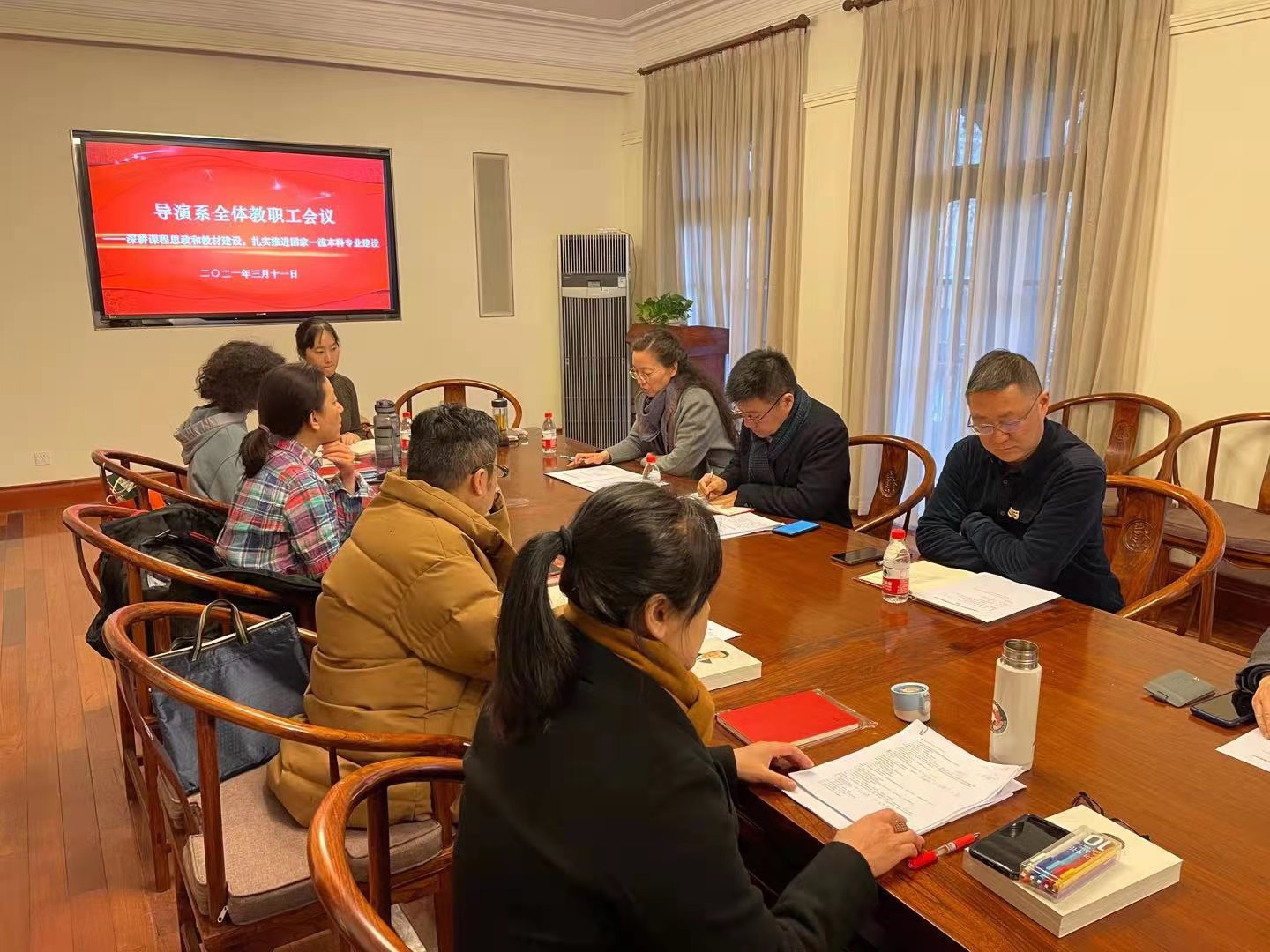 导演系党支部于2021年3月19日下午召开2020年度专题组织生活会和民主评议党员工作,会议由党支部书记韩雪松同志主持,党支部副书记尹悦蓉、学生辅导员夏帅列席本年度组织生活会。上海戏剧学院党委书记谢巍同志莅临会议并发表讲话。