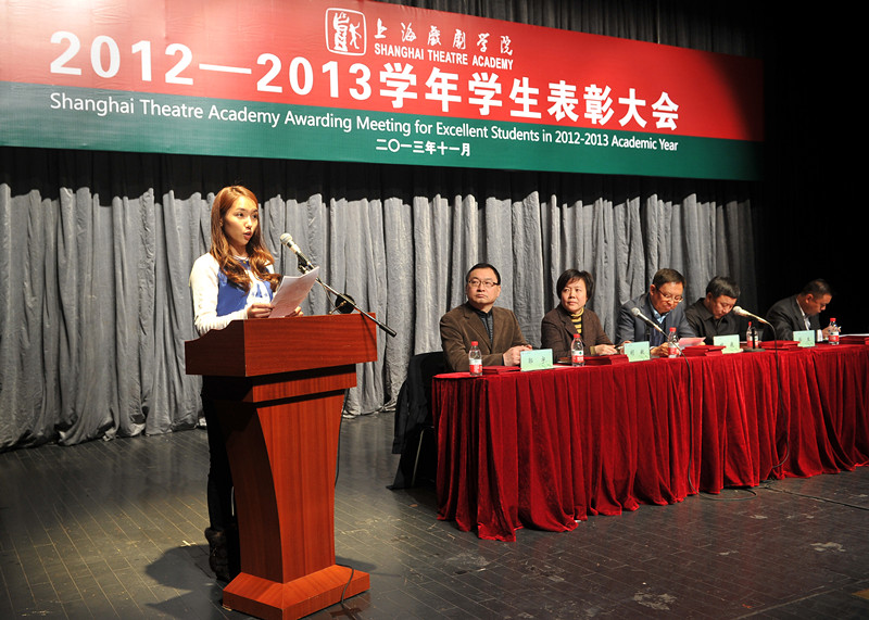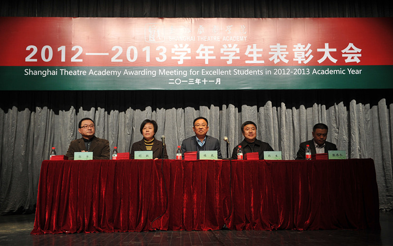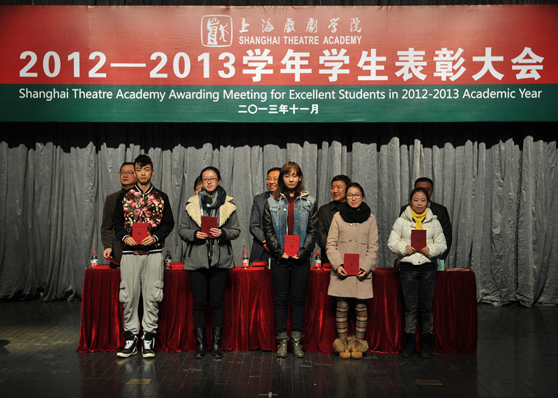 11月28日下午,上海戏剧学院2012—2013学年度学生表彰大会在华山路校区端钧剧场隆重举行。校党委书记楼巍,院长韩生,党委副书记胡敏,副院长张伟令、郭宇出席大会并为获得各类奖项的集体和个人颁奖。大会由党委副书记胡敏主持,各院系领导和辅导员老师以及获奖同学在主席台下就座。