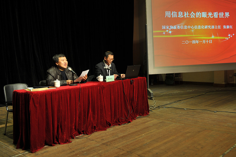 1月10日上午,国家发改委信息中心信息化研究部主任张新红同志在新空间剧场为我校中心组学习会作题为“用信息社会的眼光看世界”的专题讲座。韩生院长主持会议,校领导和全体中心组学习成员出席。