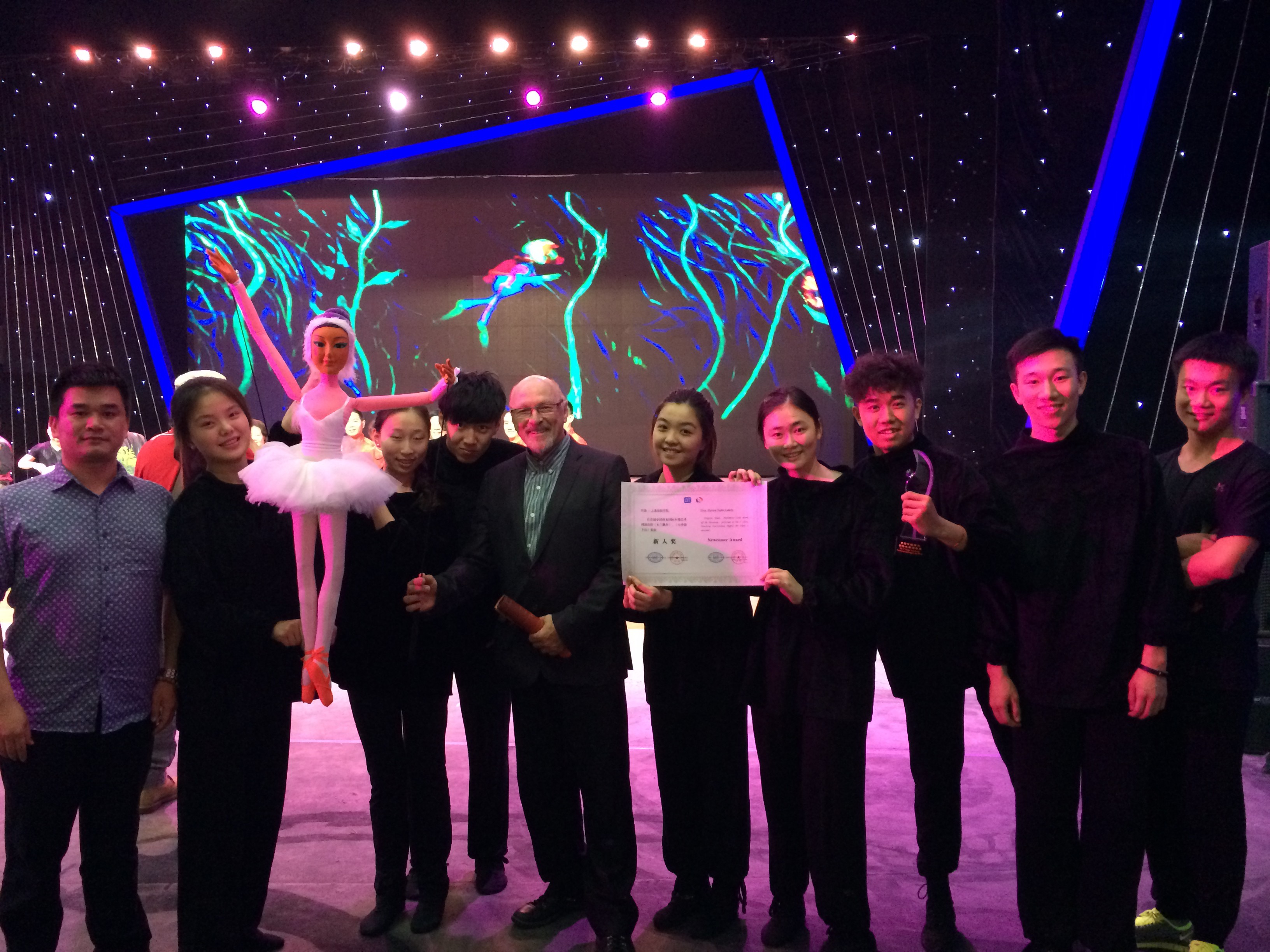 2012年,上海戏剧学院木偶专业曾赴南充参加第21届国际木偶联会大会暨国际木偶节,时隔两年又来到“大木偶之乡”,再次演绎木偶艺术的“传统与现代”。无论是在南充大剧院,还是在西华师大音乐厅,亦或是在广场上的惠民演出,场场都在观众的好奇中开始,伴随着惊叹和欢笑,最终在掌声中落幕。在参演间歇,同学们还观看了国内外多场精彩绝伦的演出,感受到木偶的艺术魅力,并在演出过程中进行学习和交流。在闭幕式晚会上我校的节目《玉兰飘香》再一次呈现在观众面前使在座观众无不惊呼学院派木偶的魅力。闭幕式结束之后,联合国教科文组织国际木偶联会主席达地、秘书长雅克思先生激动地来到舞台上和同学们交谈并提出宝贵建议,还与老师沟通国际间木偶教学的相关事宜。