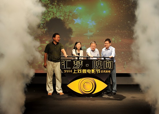 图为领导和嘉宾共同为2014上戏微电影节揭幕