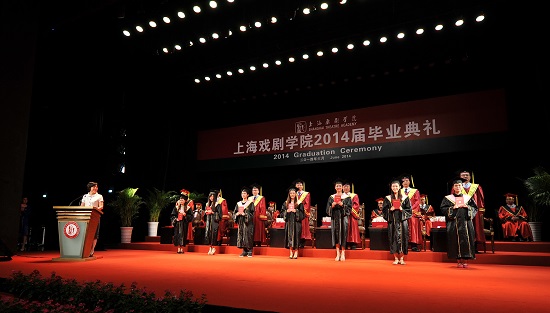 6月26日上午,上海戏剧学院2014届毕业典礼在上戏剧院隆重举行。我校领导楼巍、韩生、胡敏、黄昌勇、宫宝荣、张伟令、郭宇以及校学术委员会主任叶长海,各院系领导和学校主要职能部门负责人在主席台就座。教师代表、家长代表同500余名毕业生共同参加了本次毕业典礼。毕业典礼由党委副书记胡敏主持。