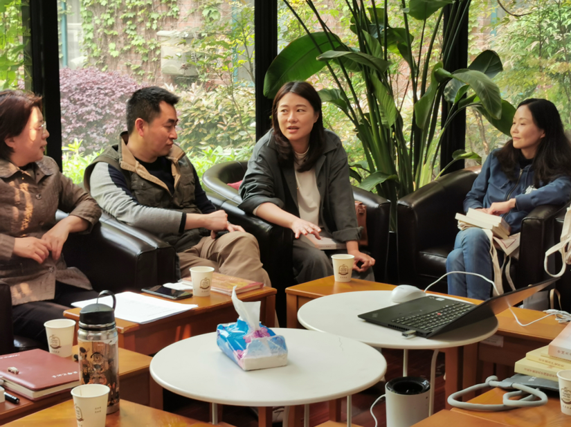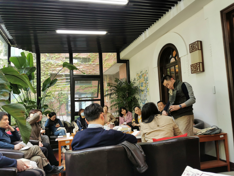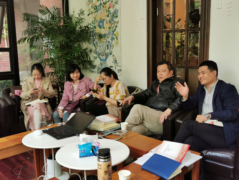 在第三环节中,支部教师代表结合自身创作的“四史题材”作品,对创作过程中的党史学习心得进行了分享交流。近年来,戏文系党支部的教师积极投身“四史题材”的戏剧作品创作,如魏东晓主持的《创造十年》、钱珏编剧的《田老大》、李世涛正在创作的《黄炎培》、张泓编剧的《织梦人》、徐煜编剧的《神球》等,积累下丰厚的创作心得,部分已演出的作品都取得了不俗的社会反响。几位老师从作品缘起、党史学习、创作思考、效果反响等多重角度娓娓道来、图文并茂,不仅展现了戏文系党支部善于学习、勤于思考、不畏挑战、勇挑重任的优良风气,也充分体现了老师们优秀的创作能力和真诚的创作情怀,充满感染力地为在座党员上了生动而别致的一课。